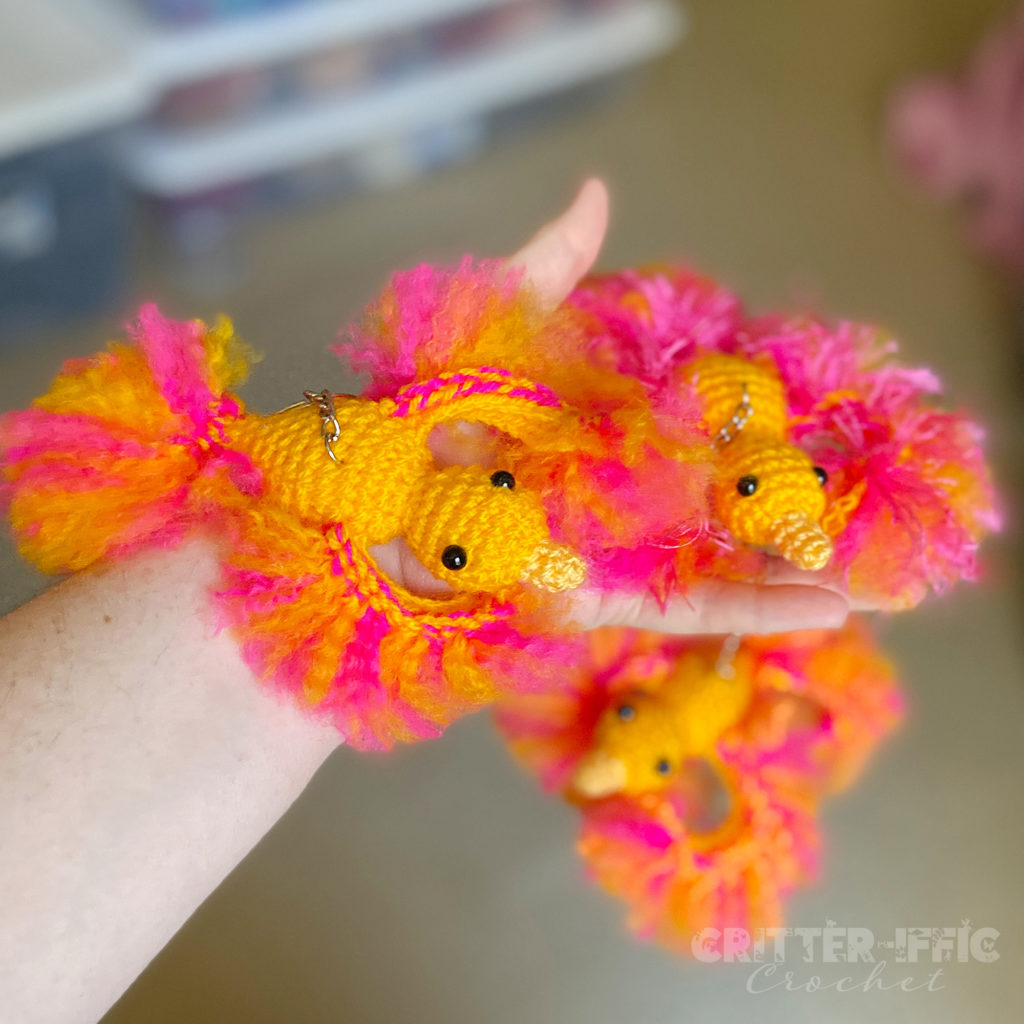 This phoenix key chain crochet pattern is a fun project that uses a small amount of yarn. Your finished plush will be approx. 6″ long when you create using a DK yarn and 3.25 & 3.75 hooks.